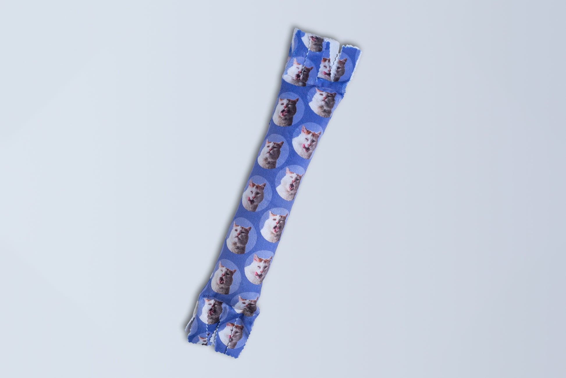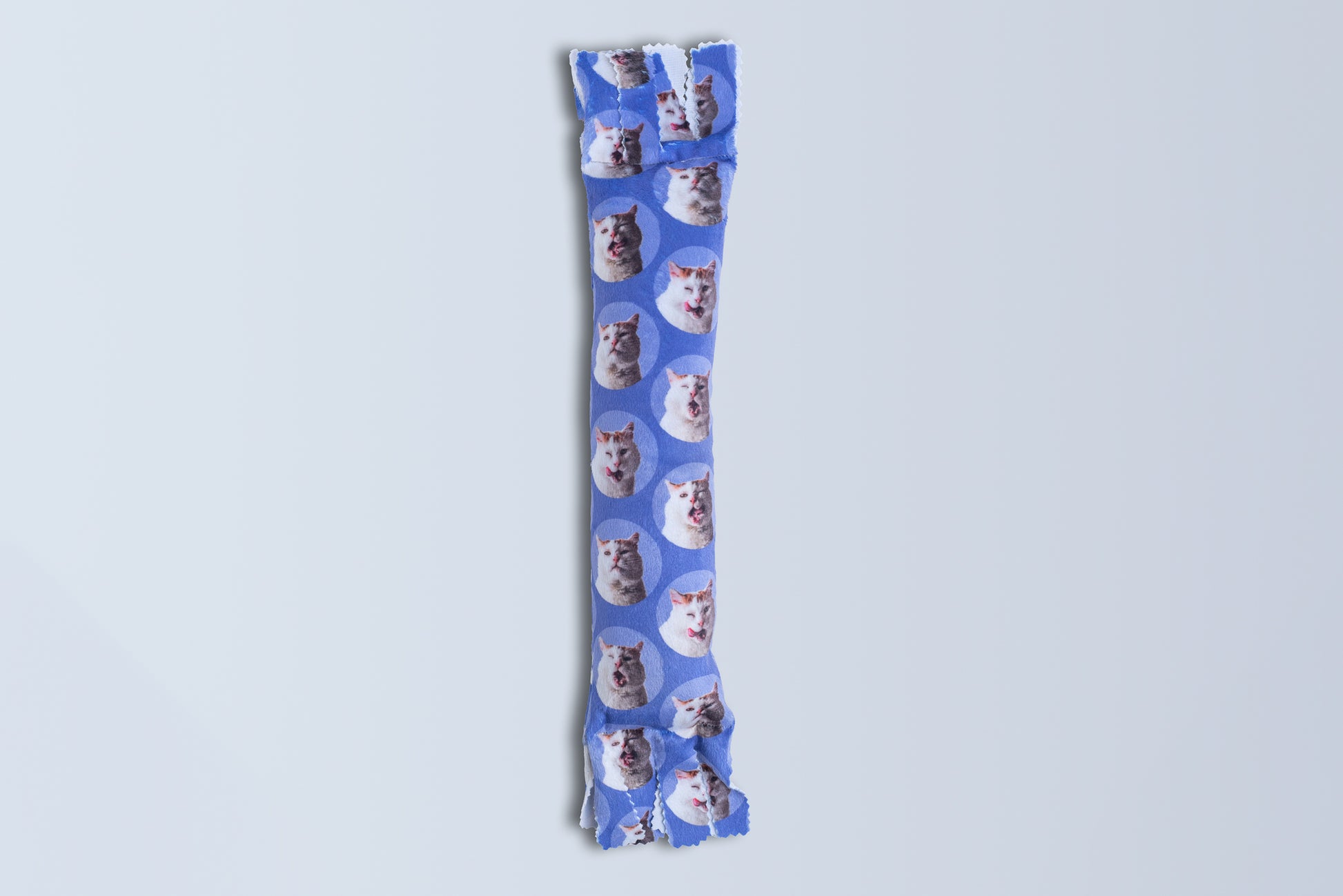 My favorite Nom Nom kicker comes in 4 colors! It measures 10" x 3" plus fringe and is made of the softest, silkiest fabric. While I highly recommend it for kicking, it also makes a great pillow to rest my head on. And oh by the way... it's filled with the most potent blend of catnip & silvervine I've ever sampled.