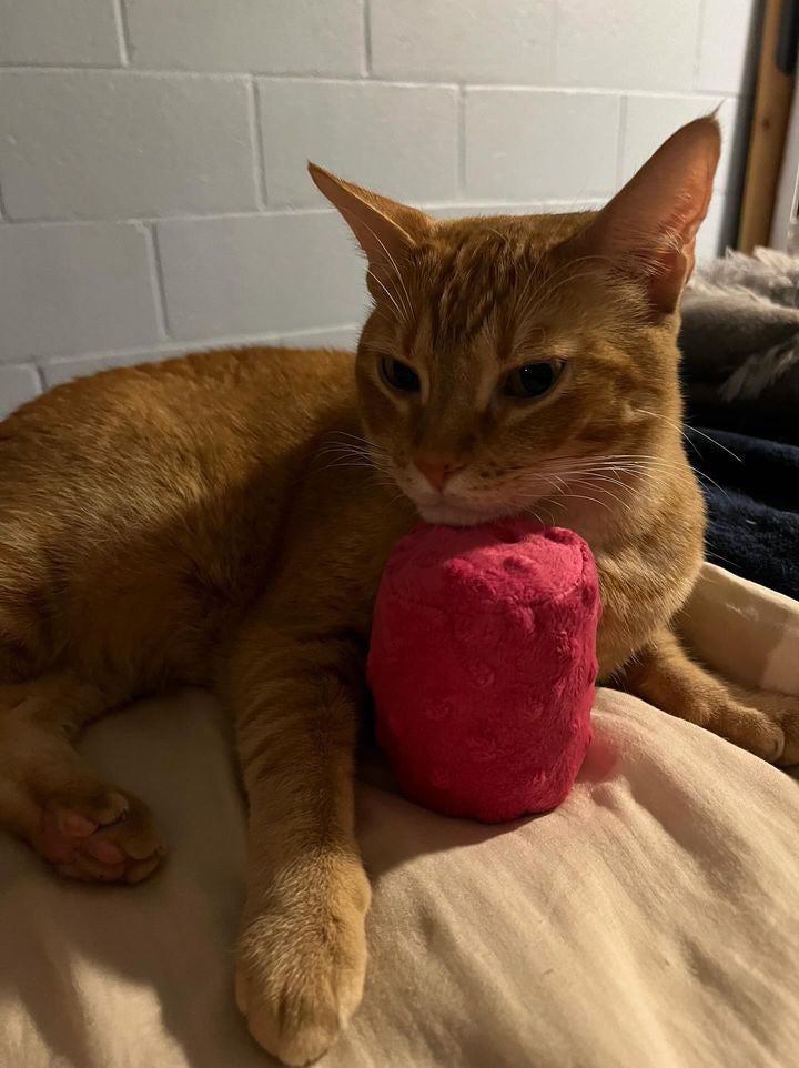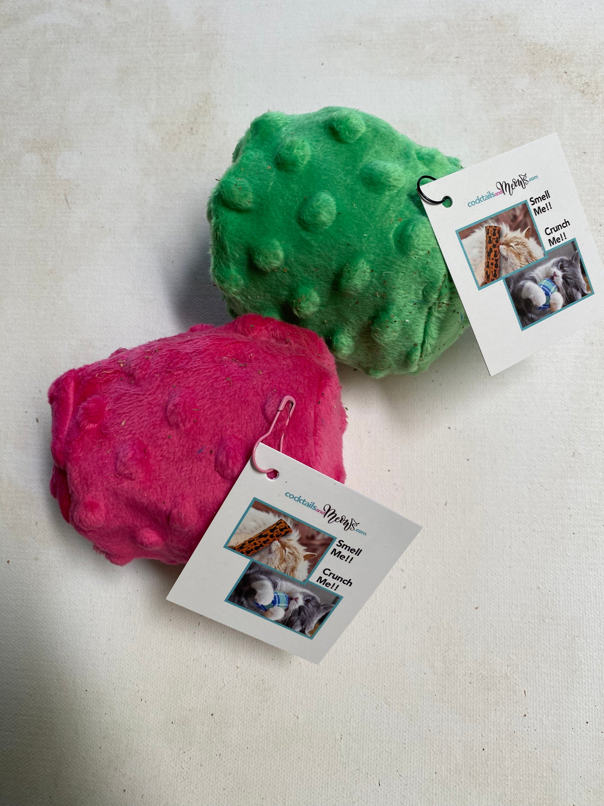 A delightfully crunchy, tossable prey toy for spirited pouncing, rolling, and solo hunting fun. Handmade and packed with 100 Proof Silvervine & Catnip and bold color for a sensory play burst.